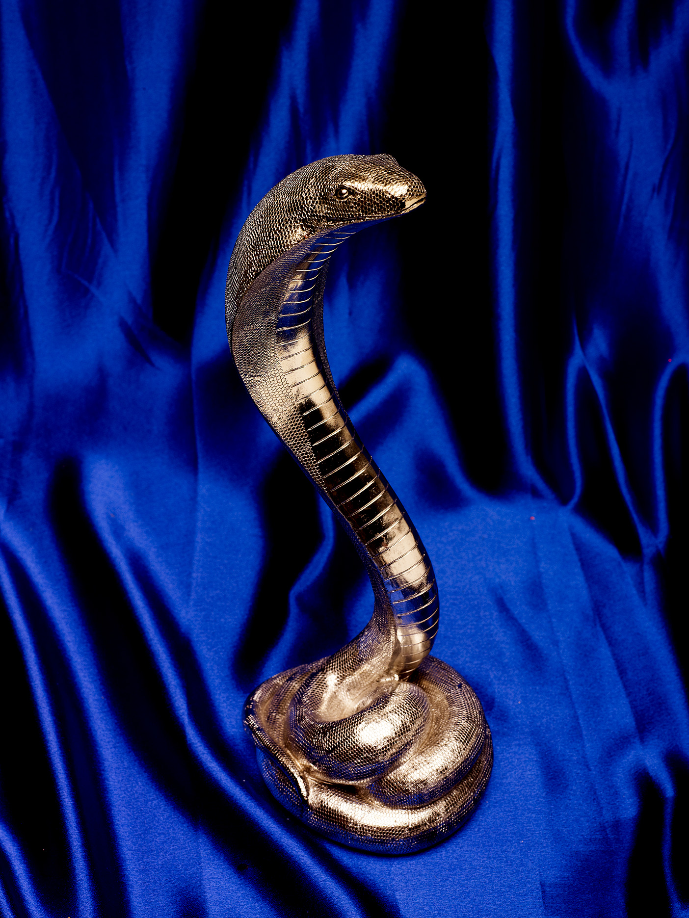 Silver cobra on blue satin